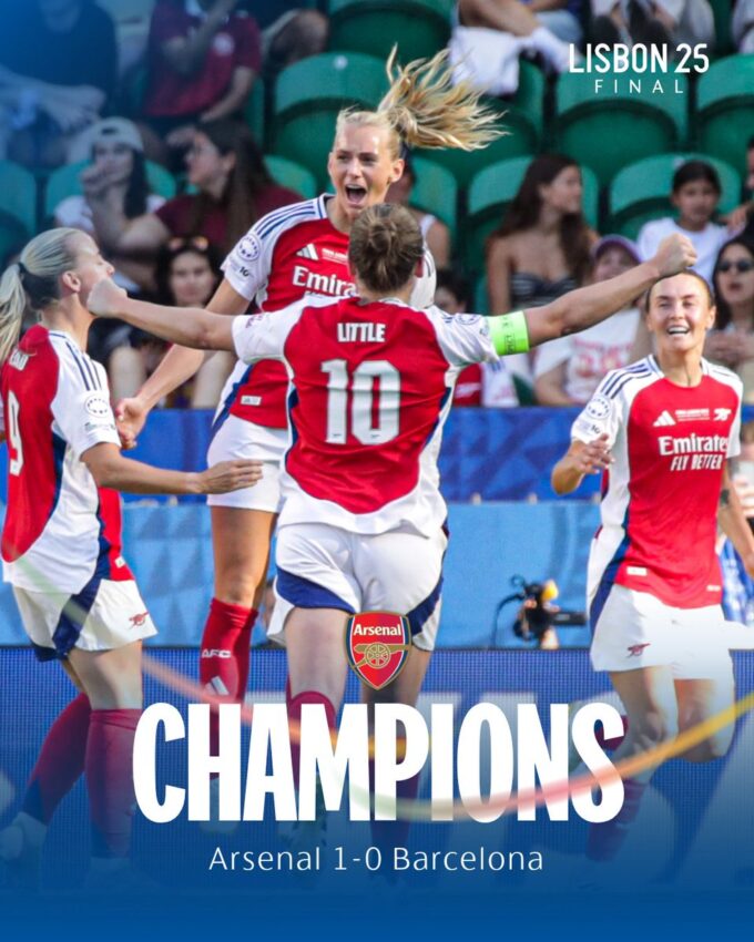 Arsenal has etched its name in European football history once again, securing a stunning 1-0 victory over Barcelona to claim the UEFA Women’s...