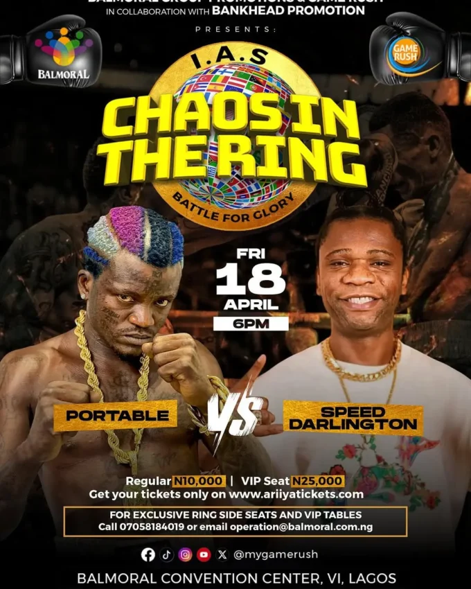 Nigerian music sensations Portable and Speed Darlington are gearing up for a heated celebrity boxing showdown set to take place on April 18...