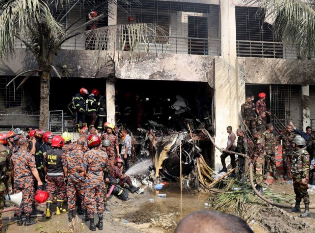 At least 19 people have died and 164 were injured after a Bangladeshi air force training jet crashed into a school campus in the capital, Dhaka.