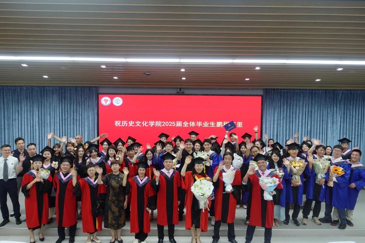 暖场环节,师生共同观看了为2025届毕业生精心制作的纪念视频。画面回溯学子们课堂求知、博物馆研学、文化实践的点滴时光,现场洋溢着浓厚的师生情与惜别之情,为典礼拉开温馨而庄重的序幕。