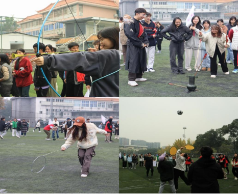 在紧张激烈的比赛中,师生们精神抖擞,全力以赴,各队队员依次参加射艺、休闲运动接力赛与珍珠球三项团队比赛。这些项目不仅考验了同学们的体能、技术,还展示了他们的团队协作能力。师生们一同度过了愉快的运动时光,促进了师生间交流,增强了同学间的凝聚力,也让大家亲身体验到了传统体育文化的魅力。