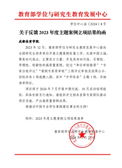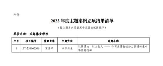 yl23455永利集团宋秀平教授申报的“以物证史 以文化人——体育史博物馆助力弘扬传承中华体育精神”成功入选“中国专业学位案例中心”中华传承主题案例库。